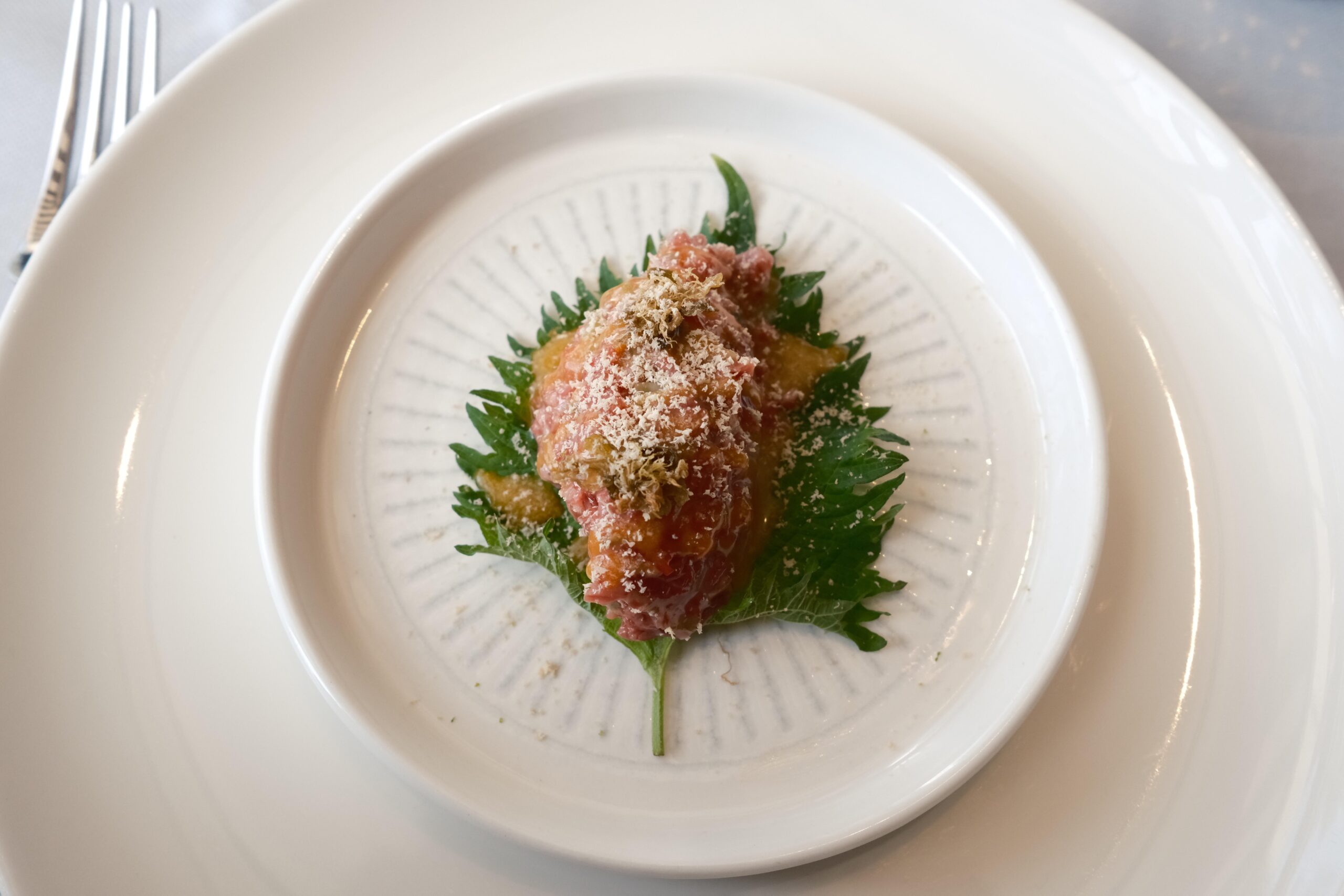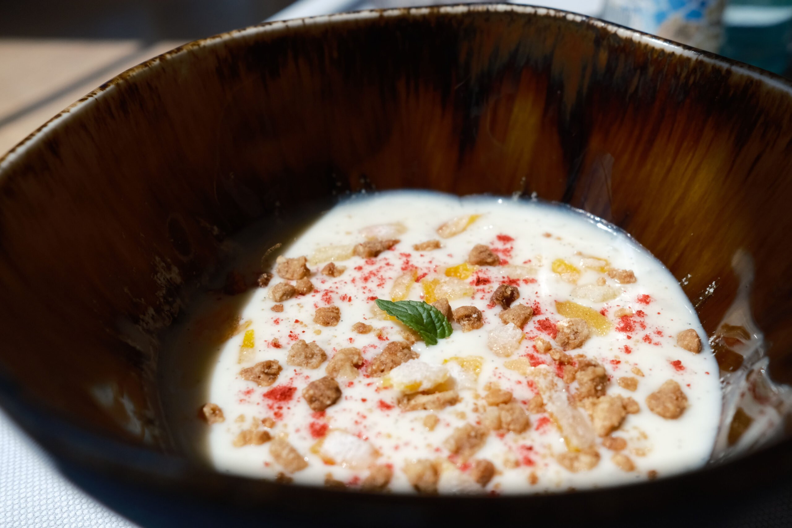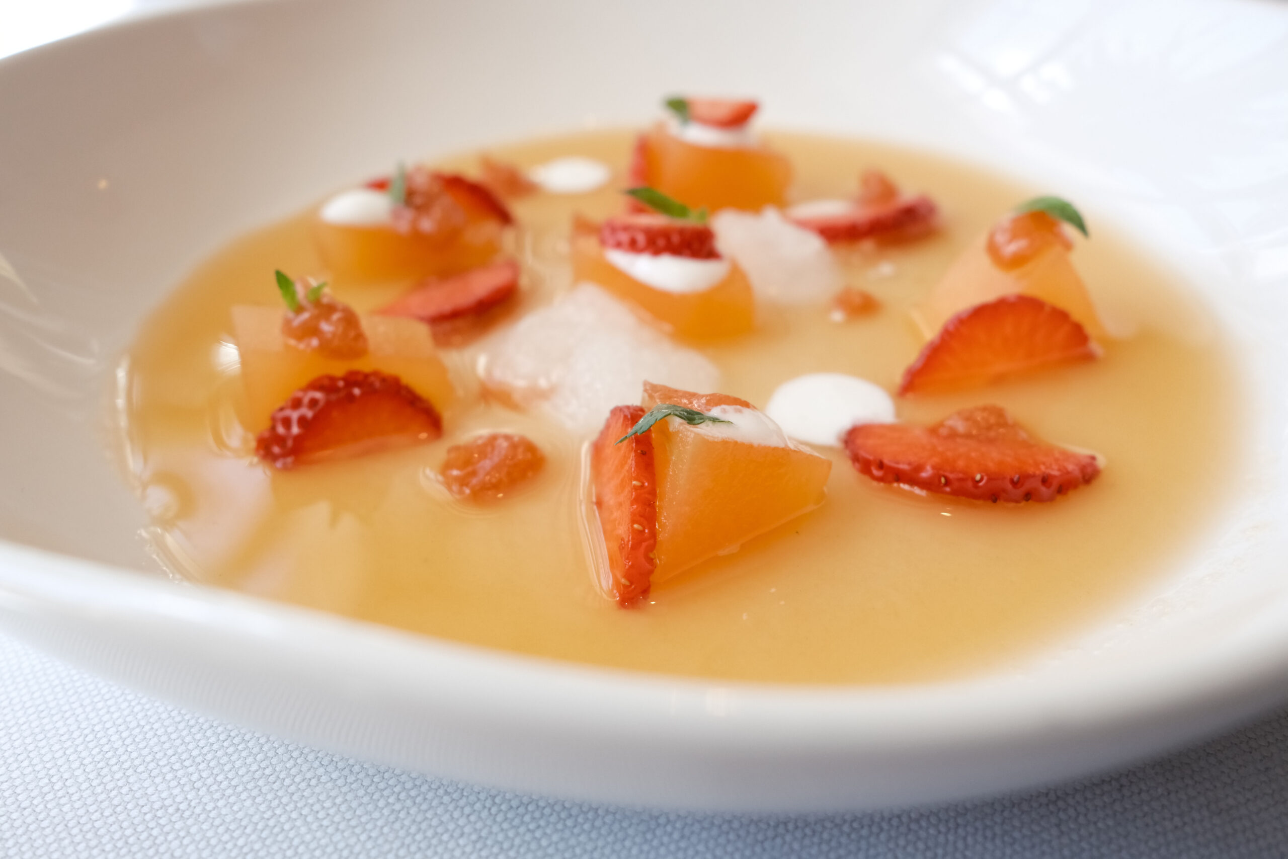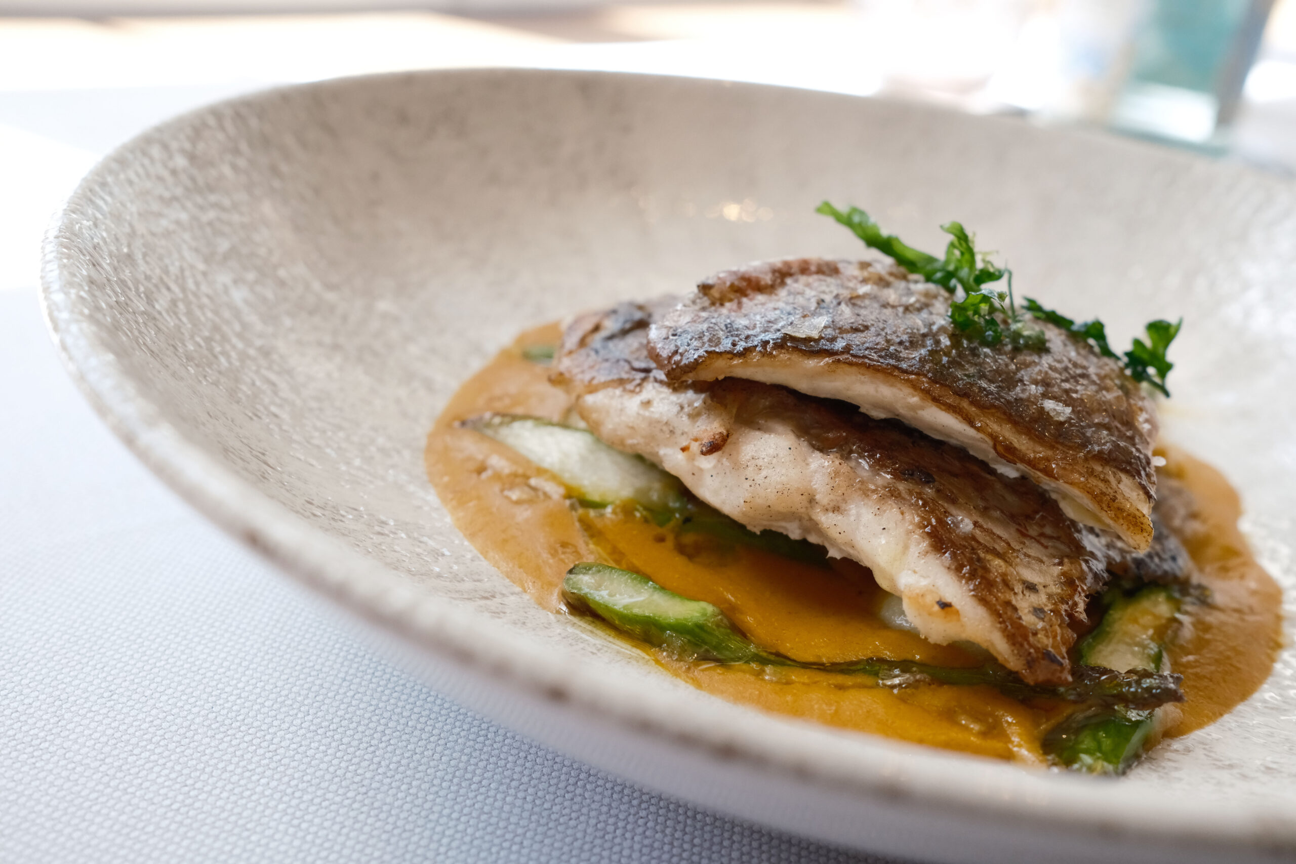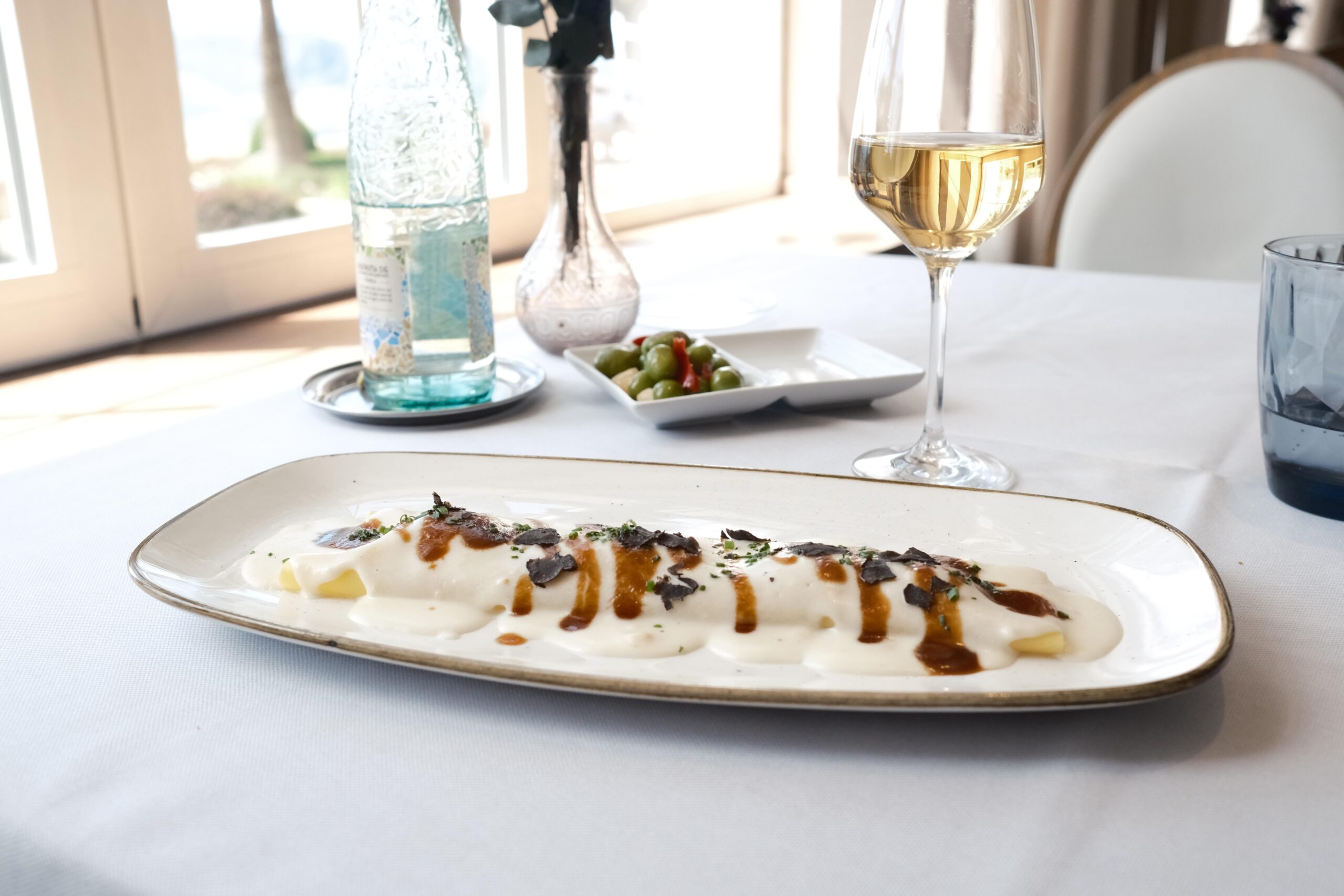 En el tintero se han quedado para una próxima visita otras propuestas como: Tomates en texturas esencia de ensalada líquida, cebolleta fresca y granizado de su jugo; Raviolis de langostinos puerros y setas de temporada con gazpachuelo del puchero, caviar de vermú y hierbabuena; Salmonetes soasados sobre ajoblanco de coco, higos y gel de apio‑manzana, Falso risotto con magret de pato a la brasa, foie y matices de cereza negra y el Chocolate, pan y aceite: coulant de chocolate 70%, helado de pan tostado y AOVE de Ronda.