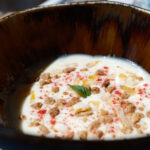 En el lado opuesto, la mera inclusión de la manteca colorá es toda una declaración de intenciones. Atún de almadraba, morcilla, queso payoyo, salmorejo cordobés, chicharrones de Cádiz, aguacate de la Axarquía o la creación de un fondo a base de guiso amarillo para acompañar a un pargo. Tampoco falta su particular versión del arroz con leche para darle otra dimensión a un postre tan tradicional y que salió, desafortunadamente, de los restaurantes de mejor calidad.